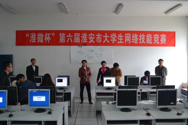 11月1日,由共青团淮安市委、淮安市科学技术协会、淮安市计算机学会主办,江苏财经职业技术学院、淮安市计算机学会承办,淮阴工学院、淮阴师范学院协办的“中国电信天翼杯”第6届淮安市大学生电脑网络大赛在江苏财经职业技术学院隆重举行,来自淮安市的各高等院校近200名选手参加了此次比赛。淮安市计算机学会理事长、淮阴工学院副院长吴建华教授,淮安市科协李顺英主席,江苏财经职业技术学院校长程淮中、副校长杜萍等领导以及淮安市各高校计算机学院(系)的负责人深入比赛现场视察大赛。