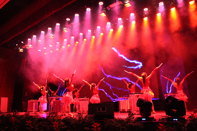 风雨耕耘五十载,景秀财院更妖娆。火红的背景下,喜庆的锣鼓激情敲响。8日上午,大学生艺术团的学生们带来的鼓舞《好日子》,欢快地拉开了校庆师生专场汇报演出的序幕。专业文化展示、社团文化展示……短短的50分钟演出里,场内掌声阵阵,精彩的演出让领导和校友们赞不绝口,纷纷竖起大拇指。