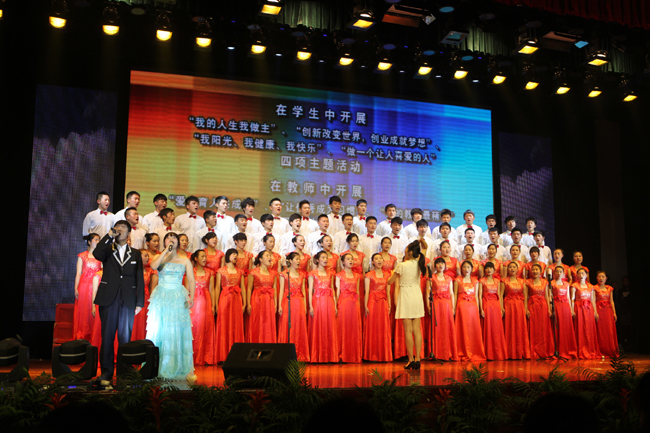 五十年来,江苏财院为社会输送了近5万名人才,他们有的是政府工作人员,一身正气,两袖清风,把母校的风采镌刻在祖国的年轮上;他们有的是工程师、会计师、税务师,勤恳敬业,精益求精,在不同岗位上延伸着财院人的自豪和荣光。一代又一代的财院人,用青春的汗水点亮信仰,铸成一座灯塔,辉映我们前行之路。在学校梦想合唱团演唱的江苏财经职业技术学院校歌《前行的汗水照亮青春年华》中,演出圆满落下帷幕。