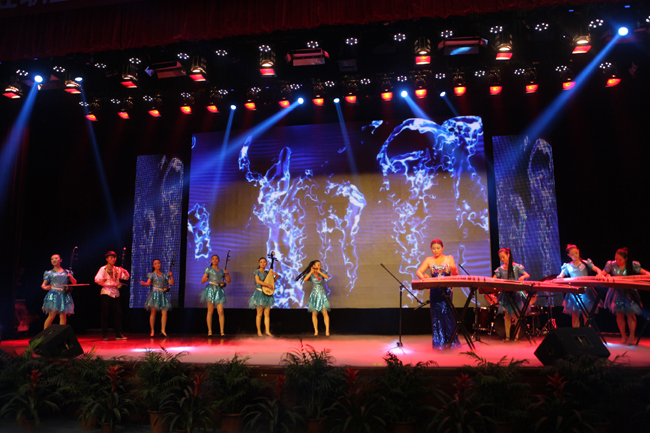 独舞《卷珠帘》与古筝清雅灵动的韵律,在全场刮起了绚烂的中国风,让每一位观众都沉醉其中。二胡、琵琶、短笛欢快上阵,与第六届国际华人民乐大赛古筝独奏金奖获得者、我校团委老师刘海沁领衔的古筝演奏组相互呼应,动感的弹奏、跳跃的音符,将古典的中国风幻化为演绎奔放热情的《西班牙风》。跆拳道,鬼步舞……学校社团学生带来的精彩表演,释放着喷薄的青春激情。“当年我们也是如此风华正茂,吹个口琴、弹个吉他,那就相当厉害了,现在的学弟学妹们真是多才多艺!”校友们感慨着时光飞逝,曾经校园生活的点点滴滴不由得在脑海里翻腾起来。