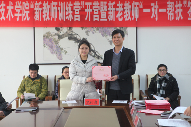 为切实加强教师队伍建设,提升新入职、新转岗教师的教学、科研、实践能力,使之逐步成长为“德高、学高、技高”的优秀教师。经过认真组织筹备,12月3日下午,“新教师训练营”开营暨新老教师“一对一帮扶”签约仪式,在行政楼310会议室举行。副校长杜萍,人事处、教务处、科技处、学生处、督导办公室等相关职能部门领导,以及“一对一帮扶”活动全体新老教师共40余人参加仪式。仪式由教务处处长王丹主持。