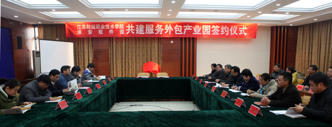 随后,杜萍副校长和郇习山副主任分别代表江苏财经职业技术学院和淮安软件园在双方战略合作协议上签字。在热烈的掌声中,程淮中校长和张明主任共同为“江苏财经职业技术学院服务外包产业园”揭牌。