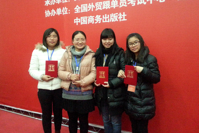 12月6日上午,“世格杯”第三届全国大学生外贸跟单技能大赛暨国际贸易专业建设教学设计比武开幕式在河南郑州的黄河科技学院隆重举行。今年共有来自全国14个省市、38所院校的52支代表队参加,其中高职组的参赛院校有32所,40支代表队参赛。我院的参赛队伍由12国贸(2)班张慧玲、13国贸班毛艳梅两位同学组成,在张丽、胡佳佳两位指导老师的带领下,以优秀的成绩获得本次大赛的高职组特等奖。