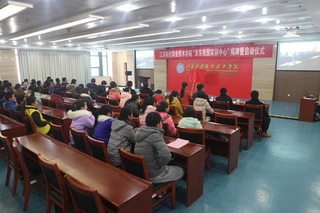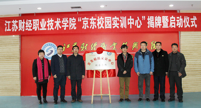 12月19日上午,我校与京东集团合作共建江苏财经职业技术学院京东校园实训中心揭牌暨启动仪式在图书馆第一会议室隆重举行。校长程淮中与京东集团企业文化中心总监章巍峰共同为我校京东校园实训中心揭牌,仪式由副校长杜萍主持。京东全国客服中心总经理曹珂,京东客服中心党委书记、人力资源总监汪世龙以及人力资源部工作人员出席揭牌仪式,我校教务处副处长王丹,校企合作办副主任王立强,经济贸易学院全体党政班子、教师代表、京东校园实训中心实习的学生代表参加本次仪式。