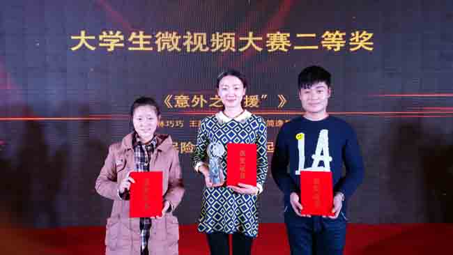 本次大赛以“学子眼中的保险世界”为主题,以学生的视角及对保险的认识,展示他们眼中的保险世界。这次大赛共收到微电影、纪录短片共30余件,最终评出二等奖2个,三等奖4个,优秀奖4个。我校作品在全省众多参赛作品中脱颖而出,最终在一等奖空缺的情况下荣获二等奖,也是唯一一所获奖的高职院校。(工商管理学院供稿)