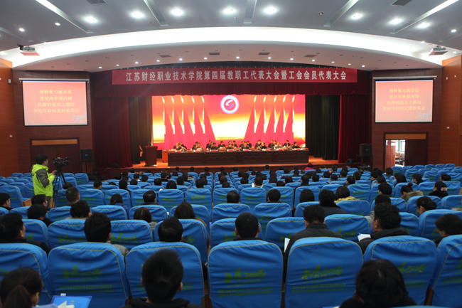 1月23日下午,我校第四届教职工代表大会暨工会会员代表大会伴着庄严的国歌声在报告厅拉开帷幕,江苏省教育科技工会副主席孙焱、淮安市总工会副主席张锋、江苏省教育科技工会职能部部长刘学超、淮安市总工会组织部部长薛春生、淮安市教育工会主席徐忠、淮安市教育工会副主席侍强等领导出席大会。我校党委书记韩香云,校长程淮中,党委副书记刘芳,副校长蒋超五、戴光顺、杜萍、张春以及大会代表、列席代表参加大会。大会由校长程淮中主持。