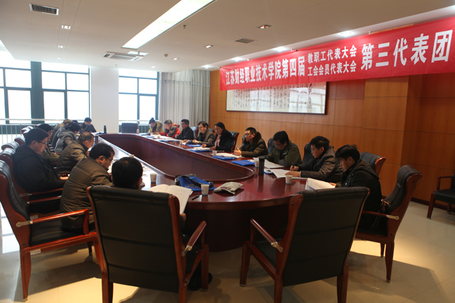 24日上午,我校第四届教职工代表大会暨工会会员代表大会全体代表分为七组,讨论并审议了学校工作报告、工会工作报告、学校财务工作报告、学校工会经费使用情况报告、提案工作报告以及《江苏财经学院章程》、《学校教职工代表大会实施细则》。