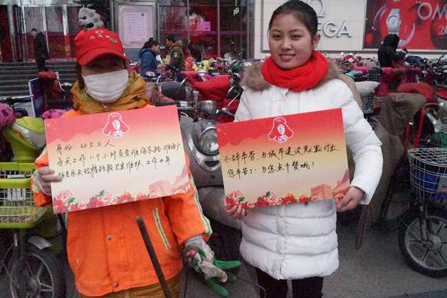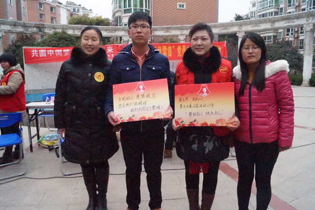 3月5日是学雷锋纪念日。校团委联合淮安市共青团,共同开展了“我为雷锋来点赞”活动。我校工商管理学院团总支的师生们精彩而有创意地完成了这一有意义的活动,受到广大市民的好评。