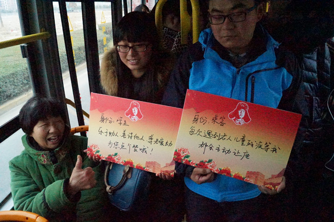 公交上的让座乘客,乐于助人,善待他人,尊老爱幼,为你点个赞!