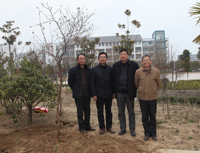 5日下午,朱书记来到学校与校长程淮中一起把丁香树种在财院美丽的新校园里。植树过程中,朱书记还引用了柳宗元《种树郭橐驼传》:“凡植木之性,其本欲舒,其培欲平,其土欲故,其筑欲密。既然已,勿动勿虑,去不复顾……”一铲泥巴一培土,其中饱含的深情正如朱书记在给党委书记韩香云、校长程淮中的简明书信中所言:“赠植丁香,以期吾校师生爱岗敬业,永存园丁之心,永怀育人之念;亦盼吾校学子,人人奋发进取,个个成人成才,飘香放彩,此乃吾愿也”,更如老书记即兴所作的小诗《赠丁香》: