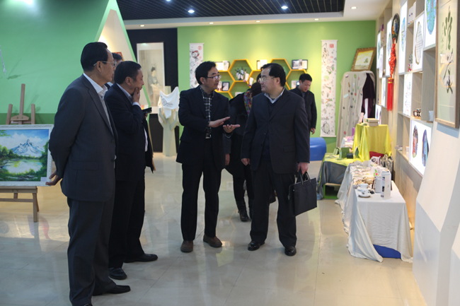参加理事会的领导和嘉宾参观学校艺术馆:
