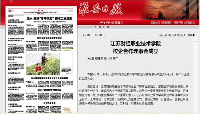 王红红说,江苏财经职业技术学院校企合作理事会的成立,是整合职教优质资源、深化政行企校合作、建设现代大学制度的有益探索,对于进一步提升淮安职业教育品牌,更好地促进地方经济转型发展具有十分重要的意义。江苏财经职业技术学院校企合作理事会以校企合作、工学结合、定单培养、顶岗实习为主要形式,由职业学院、行业协会、企事业单位按照平等原则组成的具有联合性、互利性、非营利性行业组织。