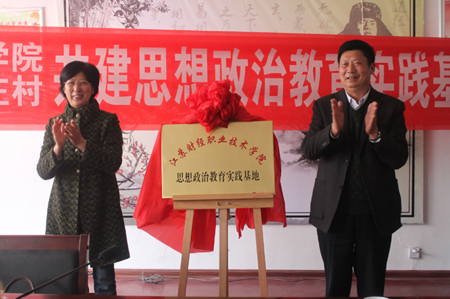 随后,我校思政部主任邹瑄与刘老庄村苏炳文主任签署了基地共建协议,我校党委副书记、纪委书记刘芳与刘老庄村党总支书记朱林共同为共建基地揭牌。
