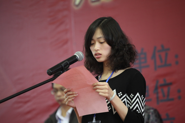 江苏海事职业技术学院钱梦洁代表参赛选手宣誓: