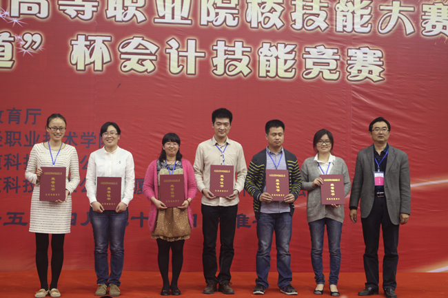 伴着参赛选手们传出的欢呼声,我校校长程淮中向参加本次比赛的专家颁发荣誉证书,江西财经职业技术学院会计系主任柯于珍教授、广州番禹职业技术学院财经学院院长张莲苓教授、厦门网中网软件有限公司院校部副总经理刘青女士等出席开幕式的领导嘉宾为此次获奖团队颁发荣誉证书。