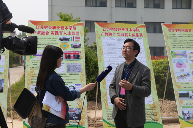 4月24日上午,中国教育报、新华日报、中国江苏网、江苏电视台等多家媒体记者来校,就2015年江苏省高职院校会计技能大赛情况、我校实践育人和文化育人等内容,深入采访了我校校长程淮中、会计学院院长张卫平、经济贸易学院院长笪建军,并先后走访了学校京东学院、会计文化长廊、货币文化馆和艺术文化馆等地。