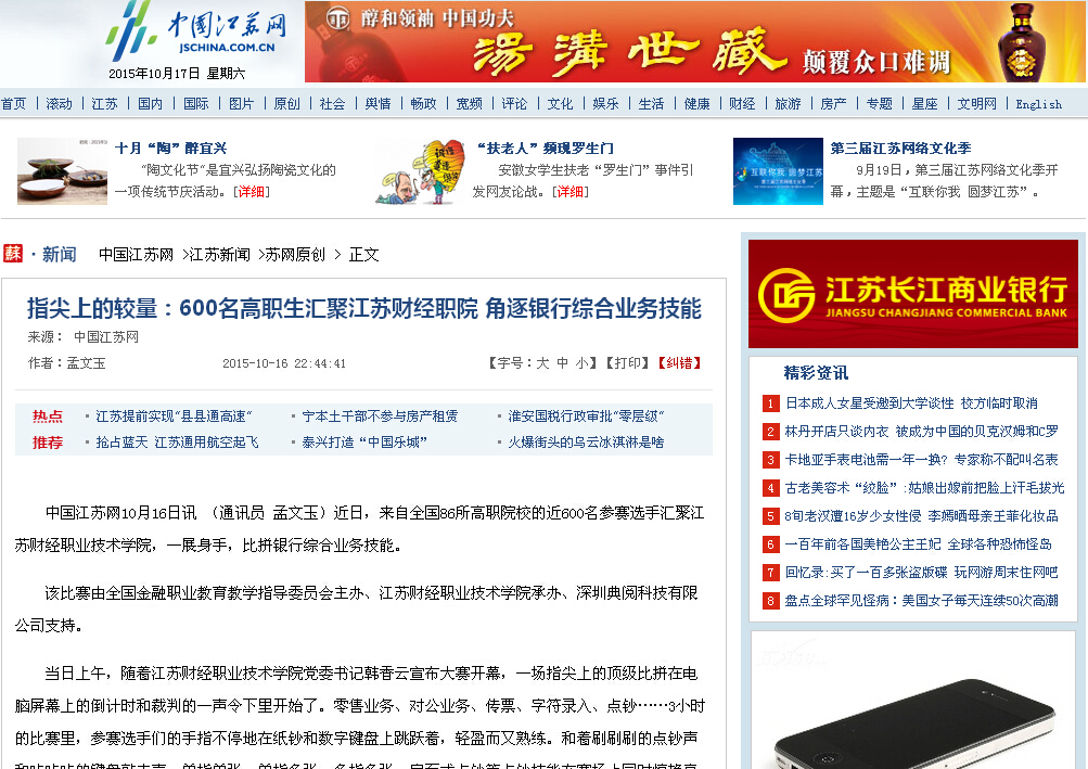 媒体报道链接:http://news.jschina.com.cn/system/2015/10/16/026652310.shtml