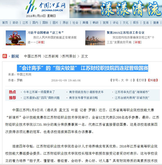 媒体报道链接: http://news.jschina.com.cn/system/2016/01/09/027604406.shtml