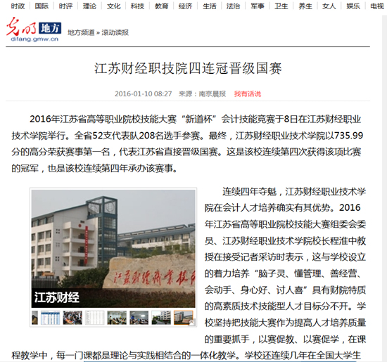 连续四年夺魁,江苏财经职业技术学院在会计人才培养确实有其优势。2016年江苏省高等职业院校技能大赛组委会委员、江苏财经职业技术学院校长程淮中教授在接受记者采访时表示,这与学校设立的着力培养“脑子灵、懂管理、善经营、会动手、身心好、讨人喜”具有财院特质的高素质技术技能型人才目标分不开。学校坚持把技能大赛作为提高人才培养质量的重要抓手,以赛促教、以赛促学,在课程教学中,每一门课都是理论与实践相结合的一体化教学。学校还连续几年在全国大学生企业经营管理沙盘模拟大赛、全国会计信息化技能大赛、全国电子商务大赛等全国性技能大赛中荣获特等奖和一等奖。