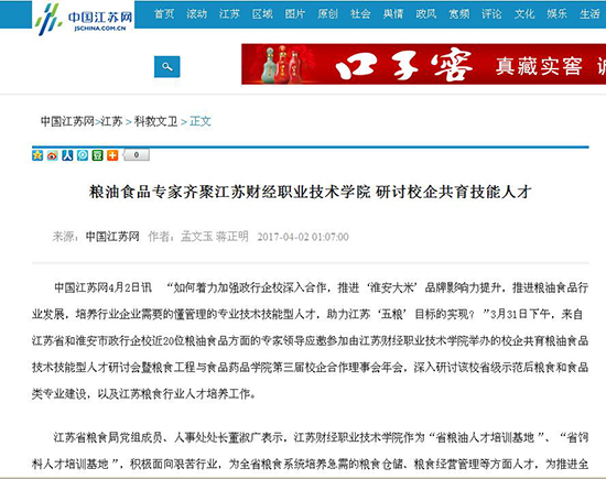 中国江苏网4月2日讯 “如何着力加强政行企校深入合作,推进‘淮安大米’品牌影响力提升,推进粮油食品行业发展,培养行业企业需要的懂管理的专业技术技能型人才,助力江苏‘五粮’目标的实现?”3月31日下午,来自江苏省和淮安市政行企校近20位粮油食品方面的专家领导应邀参加由江苏财经职业技术学院举办的校企共育粮油食品技术技能型人才研讨会暨粮食工程与食品药品学院第三届校企合作理事会年会,深入研讨该校省级示范后粮食和食品类专业建设,以及江苏粮食行业人才培养工作。