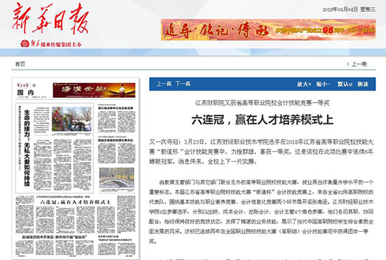 又一次夺冠!3月23日,江苏财经职业技术学院选手在2018年江苏省高等职业院校技能大赛“新道杯”会计技能竞赛中,力挫群雄,喜获一等奖。这是该校在此项比赛中连续6年蝉联冠军。消息传来,全校上下一片欢腾。