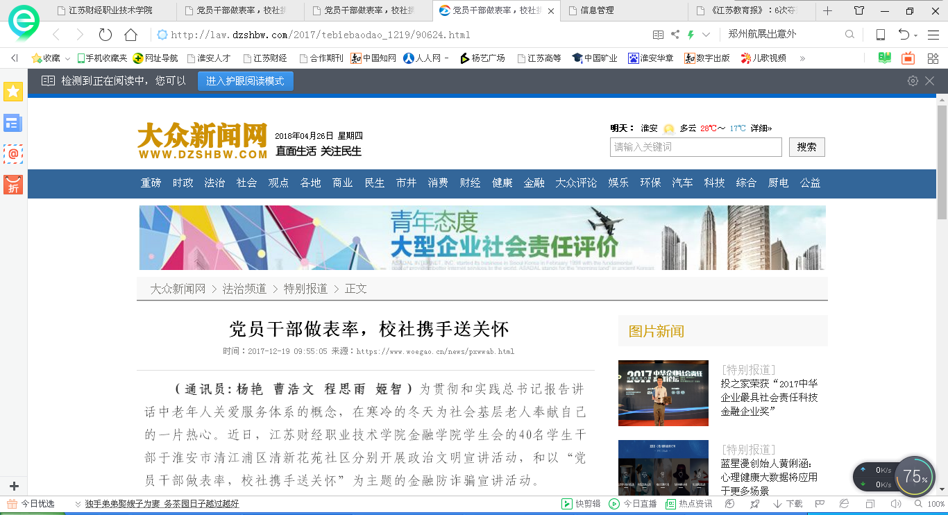江苏新闻网、大众新闻网、腾讯新闻:党员干部做表率,校社携手送关怀