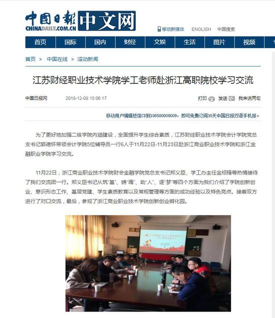 为了更好地加强学院内涵建设,全面提升学生综合素质,会计学院党总支书记郭德怀带领会计学院5位辅导员一行6人于11月22日-11月23日赴浙江商业职业技术学院和浙江金融职业学院学习交流。
