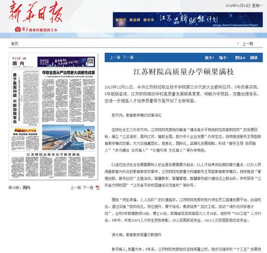 紧紧围绕“集团化、信息化、国际化、品牌化”发展战略,江苏财院党委坚持立德树人,统筹推进人才培养、科学研究、社会服务、文化传承与创新,学校改革发展再上新台阶。