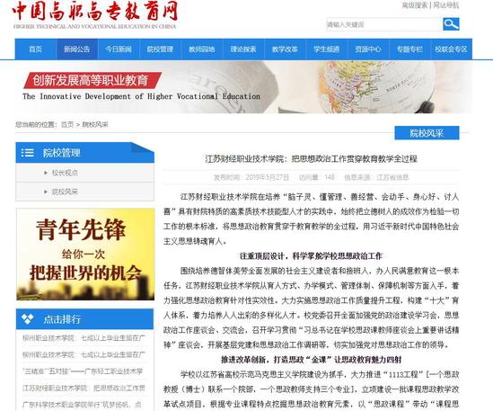 江苏财经职业技术学院在培养“脑子灵、懂管理、善经营、会动手、身心好、讨人喜”具有财院特质的高素质技术技能型人才的实践中,始终把立德树人的成效作为检验一切工作的根本标准,将思想政治教育贯穿于教育教学的全过程,用习近平新时代中国特色社会主义思想铸魂育人。