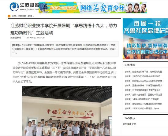 为了弘扬新时代劳模精神,发挥党员干部先锋模范作用,在暑期里,江苏财经职业技术学院会计学院分团委和关工委暑期“三下乡”实践志愿服务队开展“学思践悟十九大,助力建功新时代”主题教育活动。全国五一劳动模范张涛、共青团金湖县团委副书记任志远,会计学院分团委书记沈玲,基础教育部老师徐敏,以及会计学院暑期“三下乡”志愿服务队共30余人参加了活动。