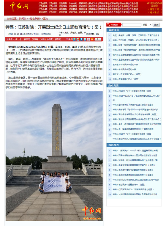9月30日是烈士纪念日,日前,江苏财经职业技术学院马克思主义学院组织翔宇社团部分同学走进淮安区烈士陵园开展烈士纪念日主题教育活动。