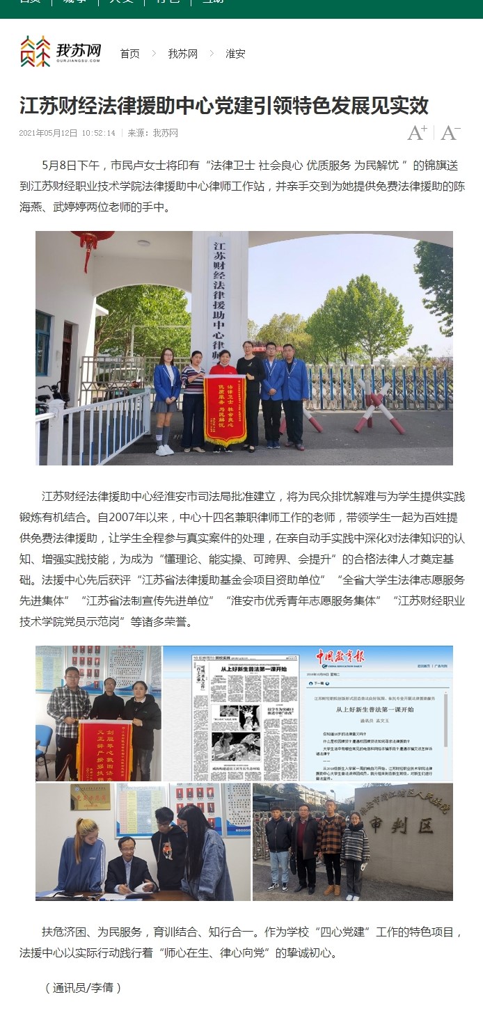 【我苏网】江苏财经法律援助中心党建引领特色发展见实效