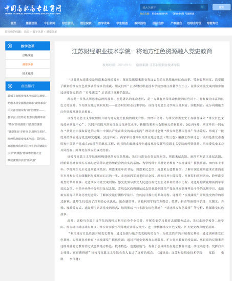 “利用地方红色资源开展党史教育,通过加强与地方党史机构的合作,为党史教育的开展奠定基础;通过调研淮安红色基地,为开展党史教育“实境课堂”提供资源;通过开展党史教育志愿服务,扩大党史教育的受益面。从目前的反馈来看这样开展党史教育的方式更具地方特色、校本特色,也更接地气,有利于引导师生在党史教育中进一步主动思考、发挥自身主体性,更有获得感”该校马克思主义学院负责人表达了这样的观点。(通讯员:江苏财经职业技术学院 郑毅 史琪 李伟健)