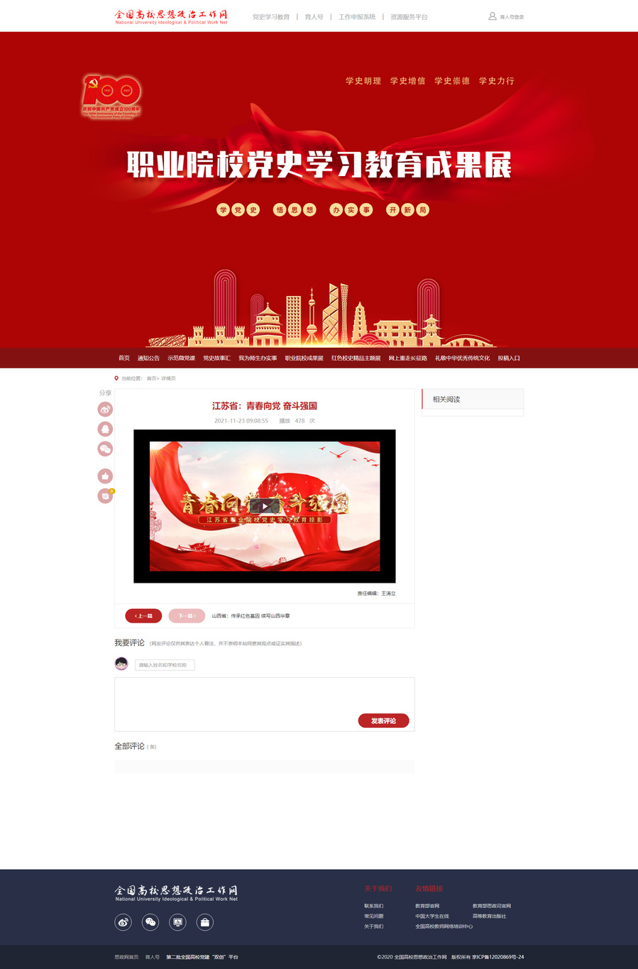 教育部开展全国职业院校党史学习教育成果展,江苏省报送的“青春向党 奋斗强国”专题片在全国高校思想政治工作网发布,我校经管学院大学生志愿者帮滞销果农卖出万斤葡萄肩负起社会责任的事迹被纳入报道。