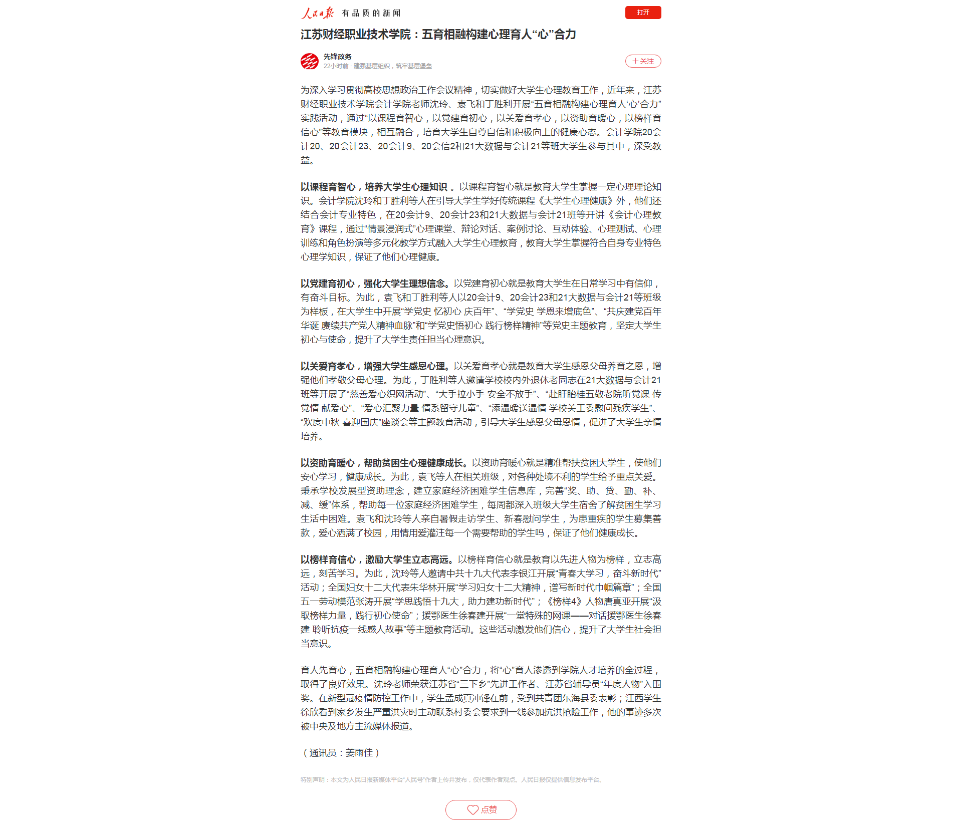 【人民日报】会计学院:五育相融构建心理育人“心”合力