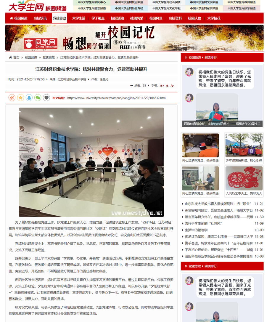 【中国大学生网】江苏财经职业技术学院:结对共建聚合力,党建互助共提升