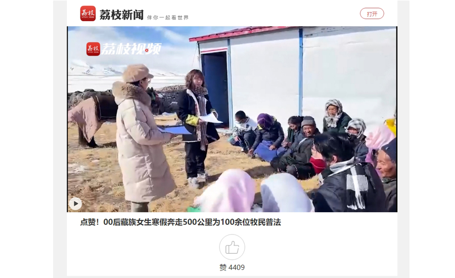 【荔枝新闻】赞!00后藏族女生寒假奔走500公里为100余位牧民普法
