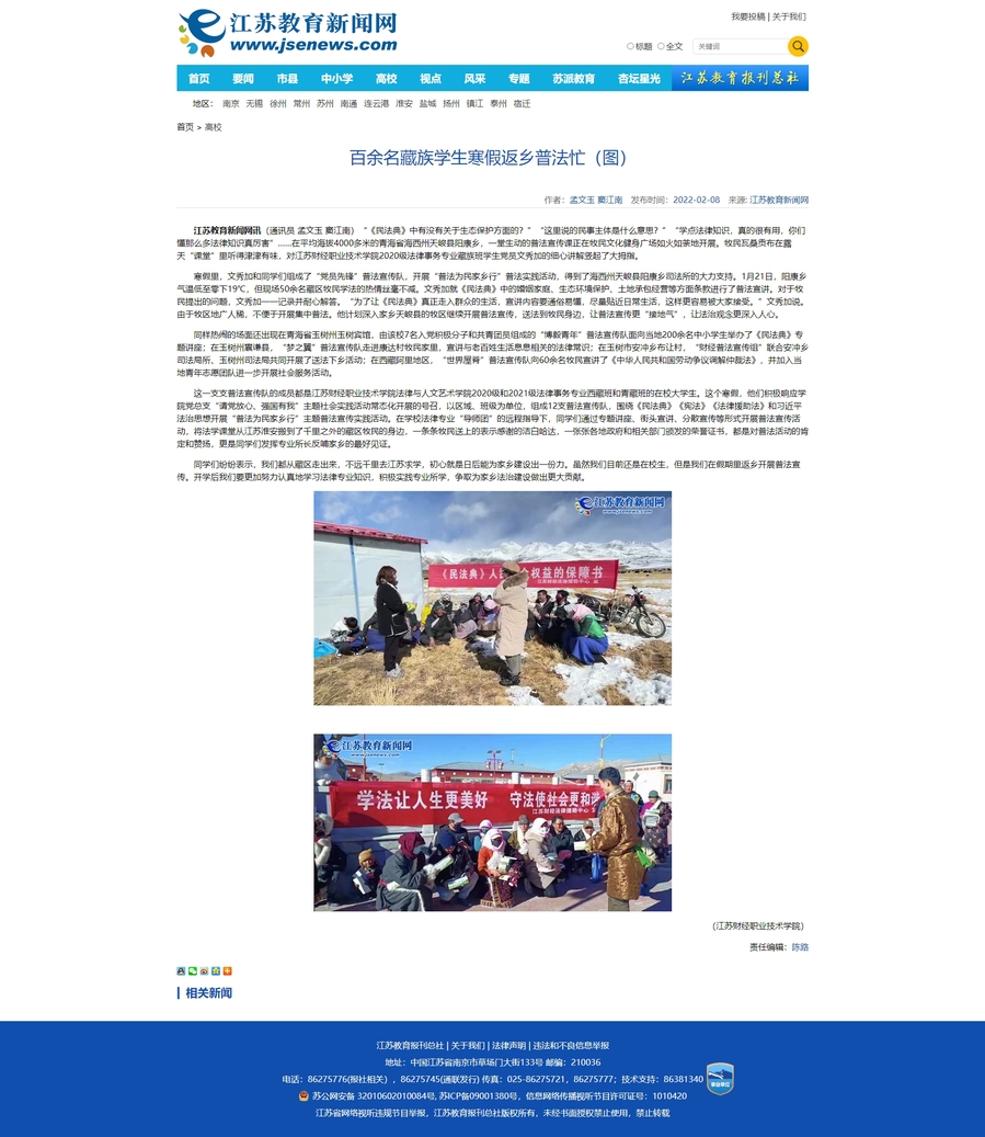 【江苏教育新闻网】赞!00后藏族女生寒假奔走500公里为100余位牧民普法