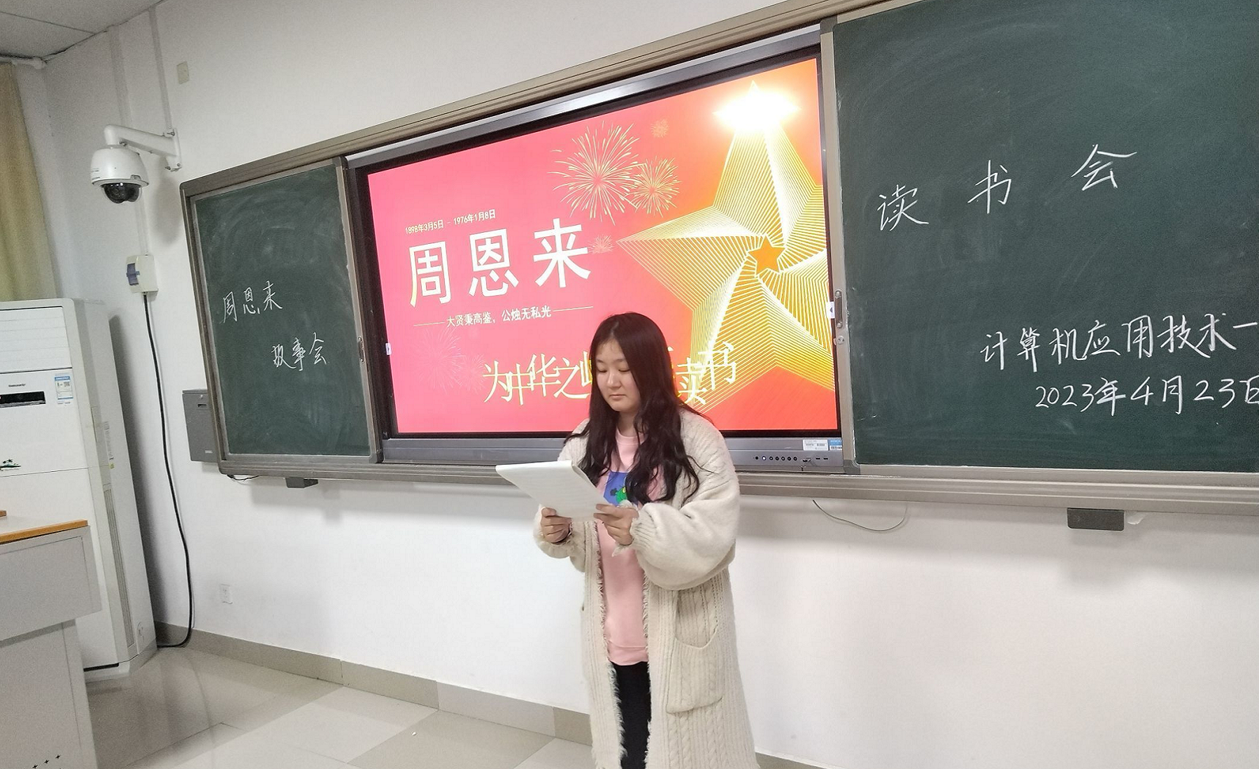 4月23日是世界读书日,22计算机应用1班全体同学在JB503教室举办了周恩来故事读书分享会。同学们分享了《周恩来的故事》一书,互相交流各自阅读的感受。