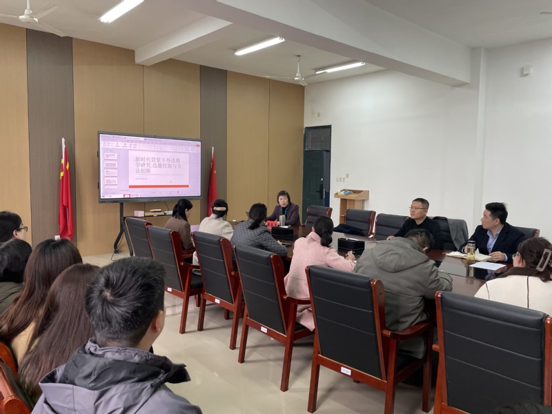 3月27日下午,南京林业大学外国语学院院长、南京师范大学博士生导师陈莉萍教授在我校做题为“新时代背景下外语教学研究选题挖掘与方法创新”的专题讲座,讲座由商务英语学院院长冯伟主持,学院全体教师到场聆听。