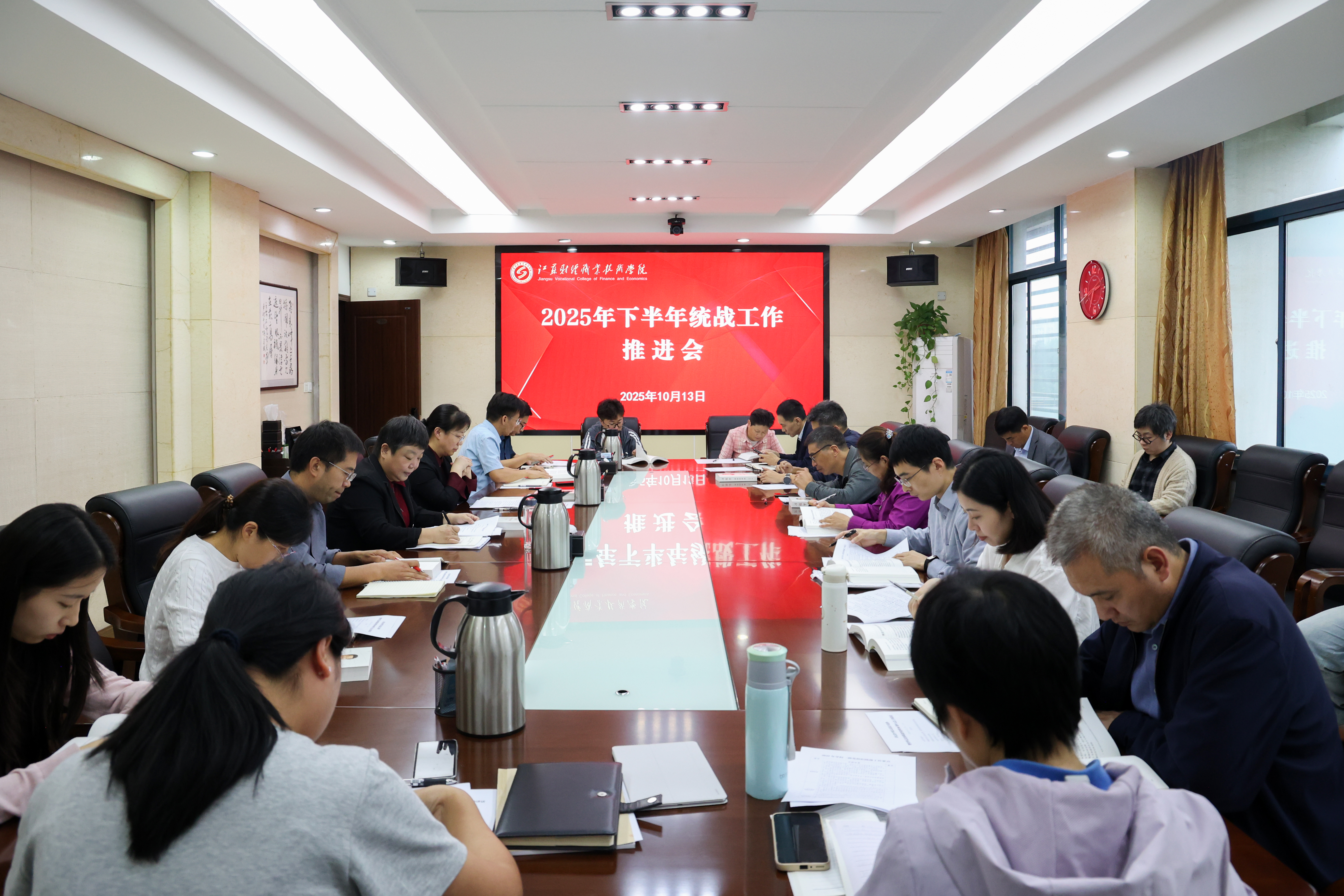 10月13日下午,学校党委副书记杜萍主持召开学校2025年下半年统战工作推进会,党委委员、宣传部统战部部长邹瑄,各民主党派、统战团体负责人,各党总支、直属党支部统战委员参加会议。