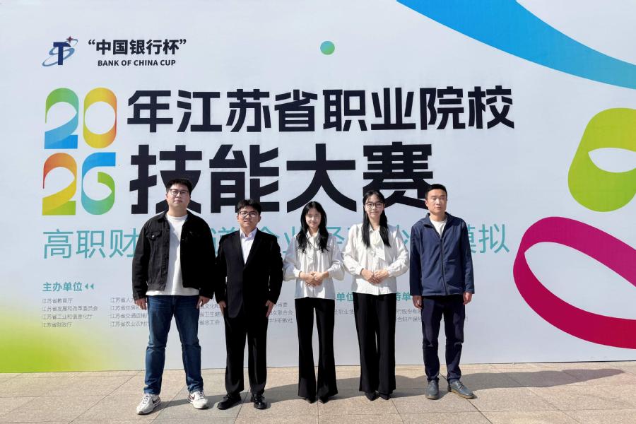 在4月20日落幕的2026年江苏省职业院校技能大赛高职组财经赛道企业经营沙盘模拟项目中,我校会计学院学生顾文乐、田馥榕、张蓝予在薛相、张兵老师的精心指导下,凭借在企业经营沙盘模拟环节中的卓越表现,最终荣获一等奖的优异成绩。