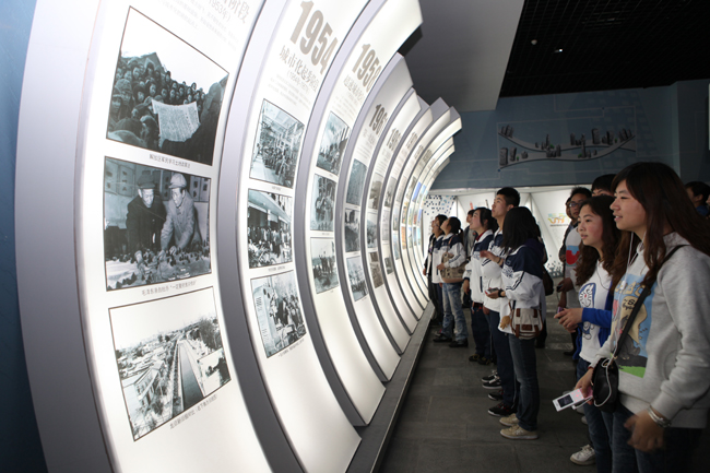 随后,进入中国城市化史馆参观淮安国际摄影展,在张爱萍、晓庄、简钧珏三位摄影家的作品中,师生们体会着抗战时期人民艰苦自强的生活。进入地下一层,“世界新闻”、“视觉之门”、“都市雏形”应接不暇,人类的发展与城市的演进在一张张照片和一段段视频中再次回放。“趣厅”、“中国厅”里冰山造型的“待破的坚冰”展板、DNA造型的设计,城市文明发展的速度及现阶段出现的问题一一呈现。在中国西游记博览馆里,“吴承恩”、“玄奘”、“唐僧”、“智慧心经”、“西游记石雕”……现实与神话在此融合,“西游记历史原型沙盘”在电脑的控制下,用不同的颜色将唐僧取经的线路直观地展现出来,点击触摸屏,还会出现与其相关的短片,让师生尽享视觉盛宴!二楼展厅中的“4D影院”、太上老君“八卦炉”、“大话西游”等各种搞笑西游版本以其高新的科技、形象独特的设计与诙谐的语言,展示着西游记的独特魅力。在中国淮扬菜博物馆,“盐商宴客图DNA造型的设计”、“漕运金咽图”、“河衙食府图”“南船北马图”展现了淮安历史上繁荣的经济与贸易。“食综遥探”里“下草湾遗址”、“青莲岗文化遗存”,吸引着大家的眼球。蒲菜、软兜长鱼、钦工肉圆……一道道淮扬菜模型逼真得让人垂涎三尺。