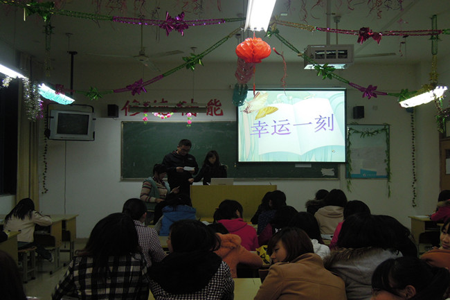 在3月7日晚的正式节日活动中,系自管会为女生们播放了微电影,让大家在电影的世界里感受快乐,当晚的抽奖活动掀起了高潮,同学们的目光全部汇聚在心愿箱上,抽中的同学除了会获得系自管会精心准备的一份礼品,现场还会在大家的帮助下实现自己的“女生节”愿望。“女生节的活动让我感到很幸福,我们班的男生今天给我们制造了好多快乐啊。”11司法助理班的朱京京如是说。