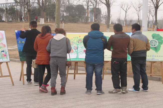 本次展出的每一张作品都充满了绿色生态的色彩,凝结着每一位学生智慧的结晶,创意十足,具有强烈的视觉效果,表现了建设生态文明重要性的主题,过往的学院老师和同学们纷纷驻足观看。