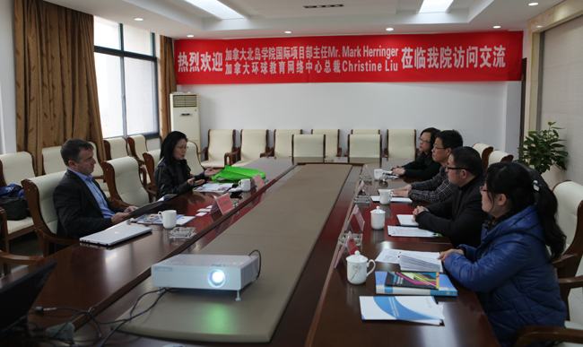 3月22日,加拿大北岛学院国际项目部主任Mark Herringer、加拿大环球教育网络中心总裁Christine Liu来我院考察交流,学院党委办公室主任、宣传部部长梁枫,外事办主任王凯,继续教育与国际交流学院副院长杨秀梅等参加交流会议。