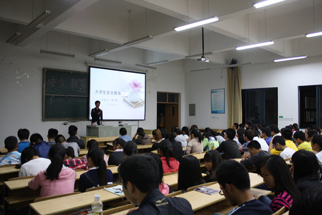 为了能够让新生提高警惕,尽快融入大学生活,9月29日晚7点,经济贸易系团总支书记林森老师为2013级新生进行了一场新生入学教育之安全教育的讲座,全体大一新生聆听了讲座。