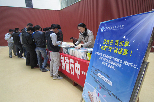 10月24日,为实现第四届读书节“开启智慧,点燃梦想”的主题,图文信息中心和淮安市新华书店在图书馆内联合举行了精品图书展销活动。本次图书展销活动的图书均为精细挑选,包括青春励志、畅销读物、历史、传记、修养和职场等共300多个品种。活动采用读者自购和荐购两种方式,如果读者自购展销中的图书,则按照集团采购价格给予打折优惠,如果不想购买,可以通过推荐采购的方式,由图文信息中心采购,等加工上架以后读者来图书馆借阅。整个活动读者踊跃参加,共自购图书20多种,荐购图书50多种。
