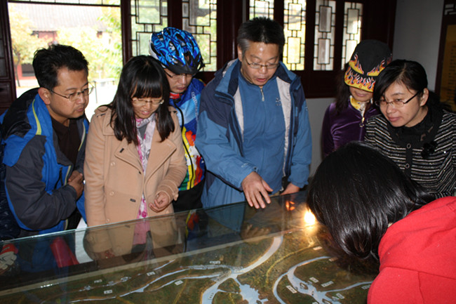出发前,顾书记给大家现场上了一课:“我们这次活动,主要目的就是要提倡健康的生活方式,希望通过此次出行,让大家受到教育,有所感悟,培养身心和谐、健康的生活方式”。大家一路说笑,不经意间已来到码头古镇,在韩信故里参观时,经贸系笪建军主任亲自担任“讲解员”,对刻在墙上的由淮阴汉代辞赋家枚乘写的一篇赋文《七发》做了详细解读:“《七发》是一篇讽谕性作品。赋中假设楚太子有病,吴客前去探望,通过互相问答,构成七大段文字。吴客认为楚太子的病因在于贪欲过度,享乐无时,不是一般的用药和针灸可以治愈的,只能‘以要言妙道说而去也’。于是分别描述音乐、饮食、乘车、游宴、田猎、观涛等六件事的乐趣,一步步诱导太子改变生活方式,‘论天下之精微,理万物之是非’,太子乃霍然而愈。”笪主任说:“枚乘写这篇文章,主旨在于劝诫贵族子弟不要过分沉溺于安逸享乐,我们也要引以为戒,戒‘贪欲过度’,提倡从改变生活方式开始,提升个人情趣品味,当今社会,物质文明高度发达,如果没有配合高度的精神文明,各种“病魔”都会在这种缺陷中滋生繁衍。”随后大家又参观了其他景点,并在大门口合影留念。