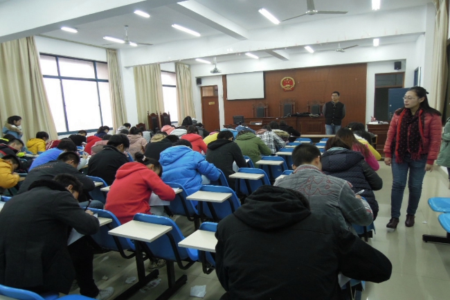 11月19日下午四点半,人文法律系第十一期党积子培训结业考试在S3-302模拟法庭举行,人文法律系辅导员张幸和团总支学生干部负责监考此次考试。